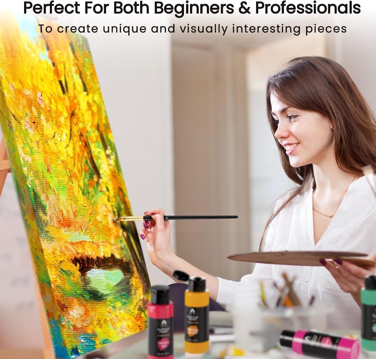 Professional Creamy Texture for Seamless Blending & Layering: Ultra-creamy, high-pigment acrylics glide effortlessly for smooth blending, layering, and intricate detailing. Fast-drying yet blendable, it enables immediate layering without color muddiness, ensuring vibrant, fade-resistant results on canvas, wood, or fabric that stay vivid for years—ideal for beginners and pros alike