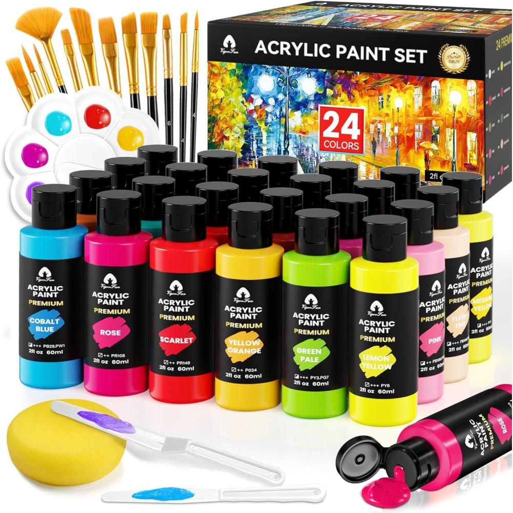40 PCS Acrylic Paint Set - 24 Colors (2oz/60ml) with Brushes, Knives & Palette - Rich Pigments Gifts for Adults, Artists & Beginners - Painting on Canvas, Ceramic, Rock, Wood(Classic)