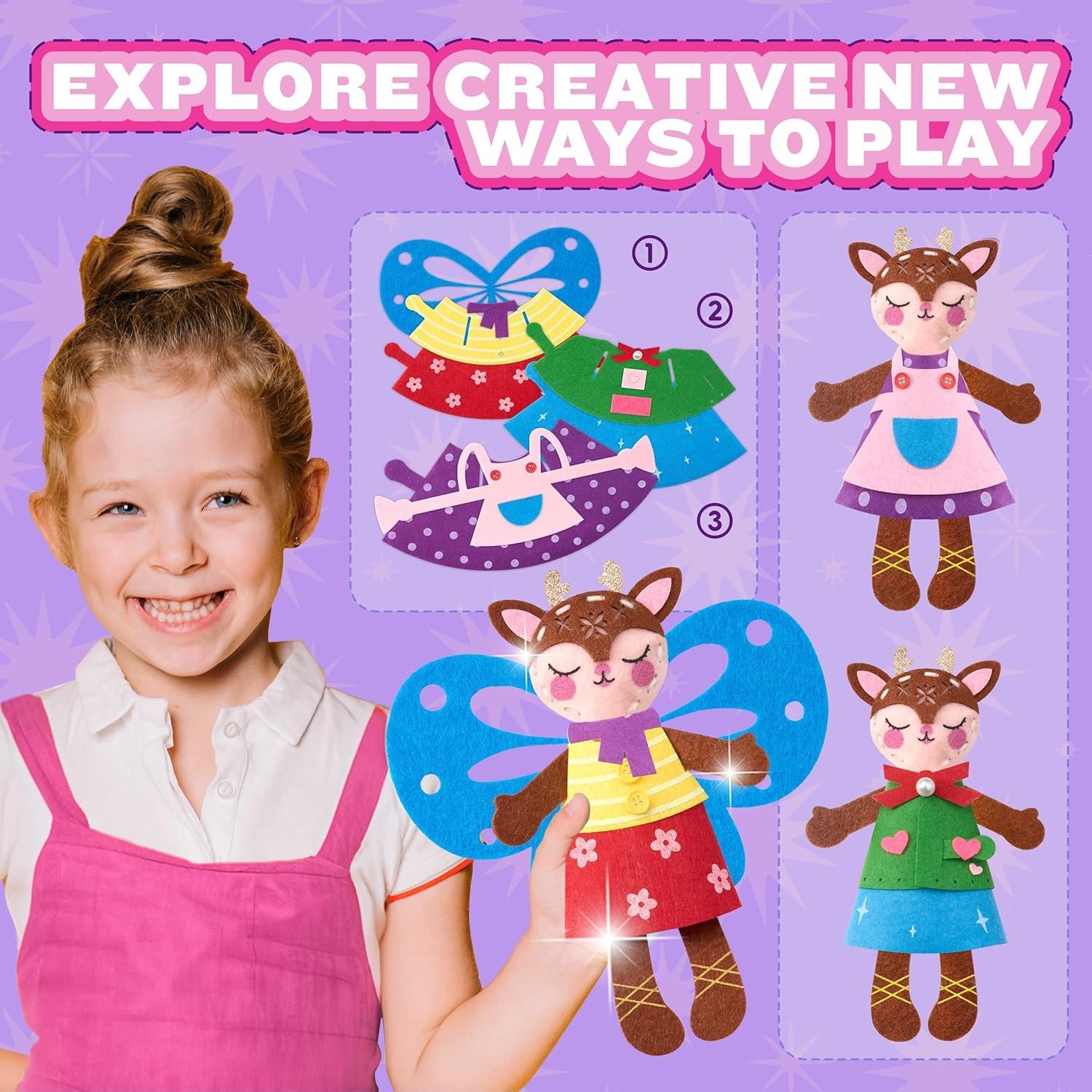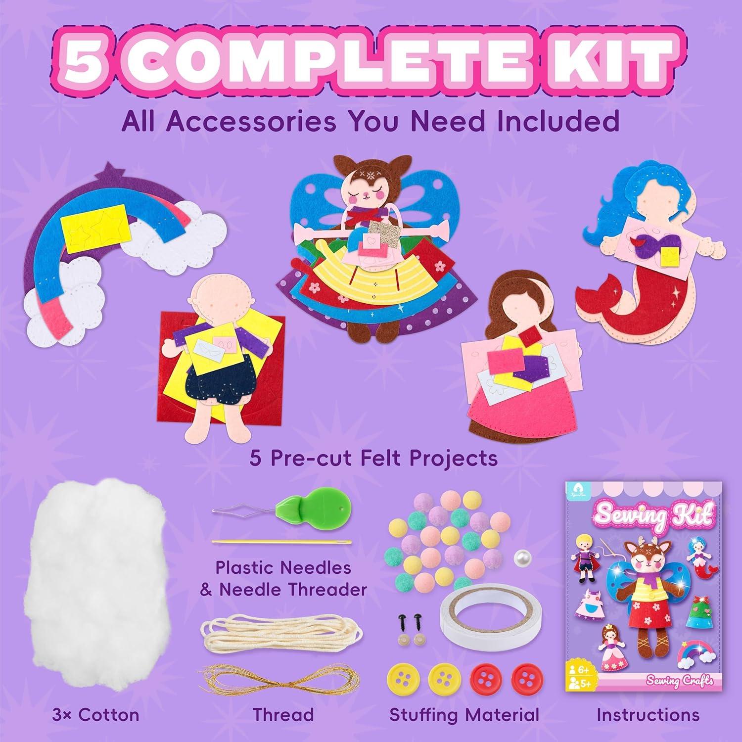 Create Your Own Fairy Tale World: Our sewing kits includes five delightful characters: a princess, a prince, a deer with three interchangeable outfits, a mermaid, and a rainbow. Each craft kits contains all the essentials for multiple sewing projects, including pre-cut materials, tools, and easy-to-follow instructions. This ensures that children can start crafting their own magical worlds immediately, fostering creativity and imaginative play